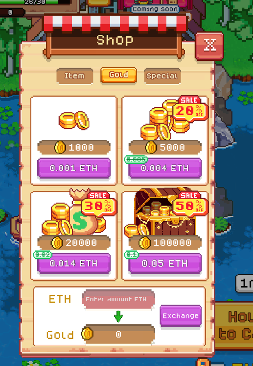 Если же у пользователей в Fishing Frenzy не хватает золотых монет, то их можно приобрести отдельно за криптовалюту. Стоимость золота представлена в ETH. В том же разделе магазина можно узнать, сколько монет вы сможете получить за имеющееся у вас количество токенов.