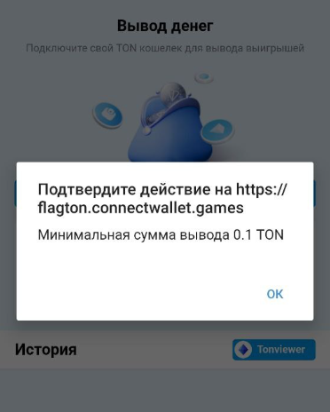 Узнать же о том, как вывести деньги из Flagton, можно в разделе «кошелек». Предварительно, там же вам потребуется привязать адрес своего криптовалютного кошелька к приложению. Затем 一 указать сумму в TON, которую вы хотите вывести. Обращаем ваше внимание, что она должна быть не меньше 0,1 TON.