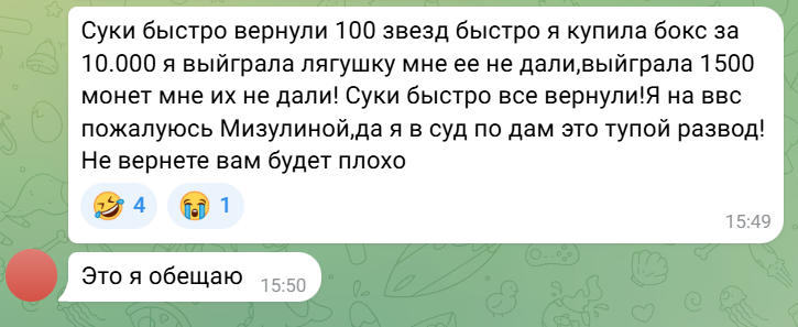 Несмотря на продолжительную “жизнь” игры, найти отзывы о Victor Shaterov и его детище оказалось не так-то просто. Наиболее активные дискуссии ведутся на официальном канале в Телеграмме. Здесь игроки жалуются на обман со стороны администрации в плане начисления бонусов.