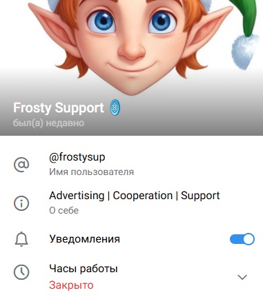 Специалисты техподдержки доступны через телеграм-бот frostysup. Однако, в часах работы указано, что сервис закрыт. Поэтому неизвестно, можно ли вообще получить обратную связь.