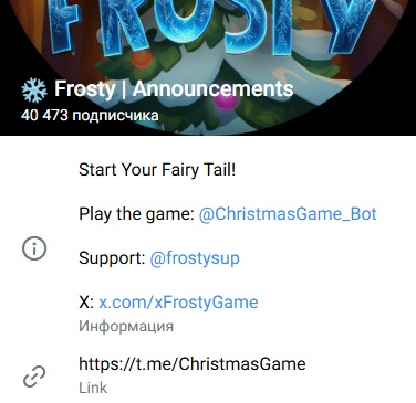 Проект имеет собственные страницы в нескольких социальных сетях – Telegram, YouTube, X (Twitter). Свою основную деятельность Frosty Christmas Game ведет в telegram. Игровое приложение можно открыть через телеграм-бот christmasgame bot, который на данный момент имеет 554 360 пользователей в месяц.
