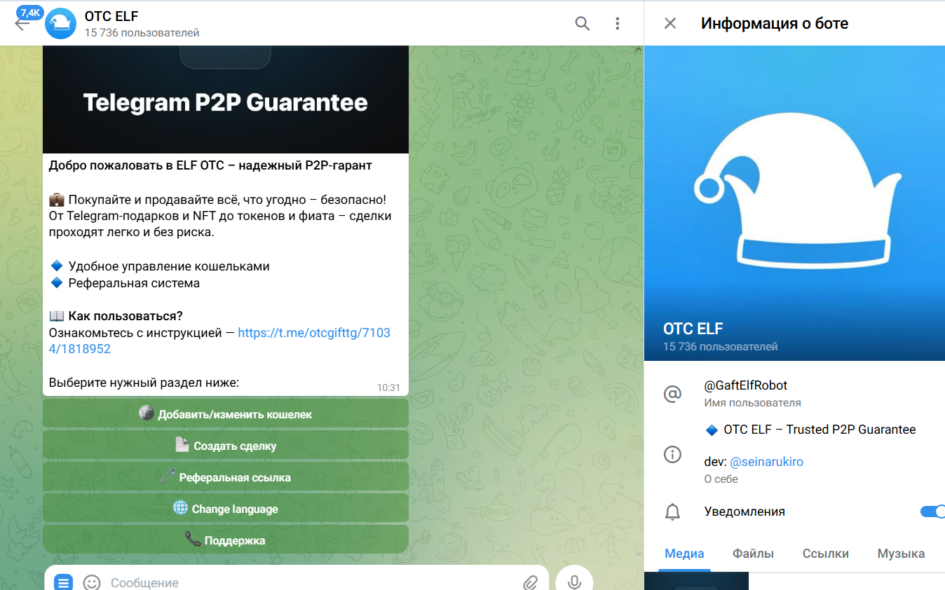 Otc Elf — это П2П-гарант в Телеграмме, который предлагает покупать и продавать тг-подарки, NFT, фиат и прочее. Основатели обещают быстрые и безопасные сделки, уверяя в удобном управлении кошельками. Для дополнительных наград предусмотрена партнерская программа, и далее мы расскажем, выгодно ли на самом деле сотрудничать с проектом.