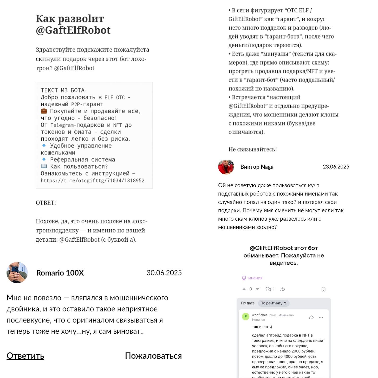 На тематических площадках мы нашли негативные отзывы о GaftElfRobot.