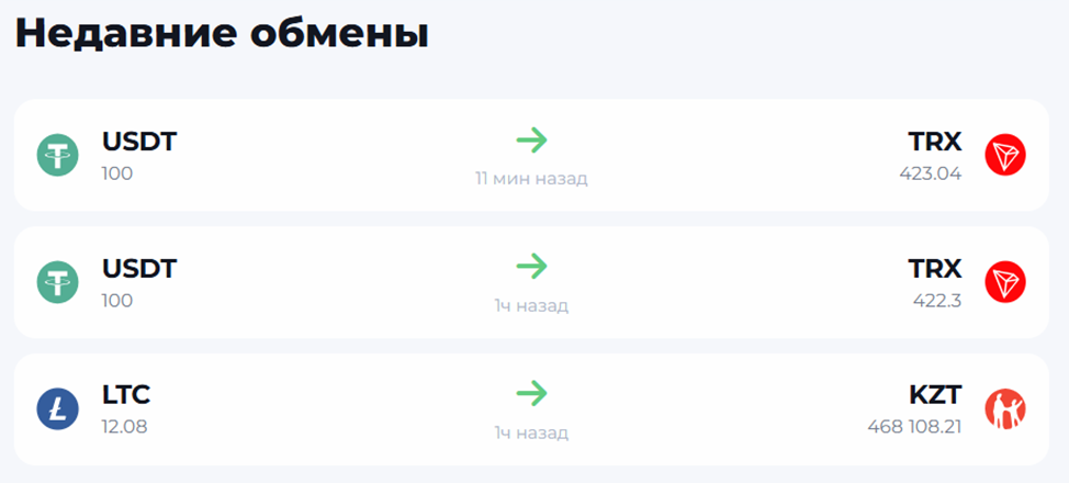 Сервис оказывает свои услуги через сайт. На главной странице GeekChange com представлены последние обмены, совершенные клиентами, что должно выступать доказательством тому, что проект исправно выполняет свои функции и платит пользователям.
