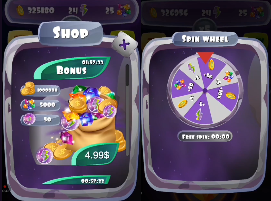 Механика построена таким образом, что скорость зачисления монет постепенно снижается. Приходится тратить энергию, а чтобы ее получить, нужно открывать сундуки. Один раз этот процесс бесплатный, затем придется ждать час или заплатить $5. Аналогичная ситуация складывается и с «Колесом Фортуны». Более того, вознаграждение за раскрытие кристаллов срезают в геометрической прогрессии. Создается ощущение, что разработчики монетизируют игру через показ рекламы и донаты, но не дают собрать нужное для вывода количество монет.