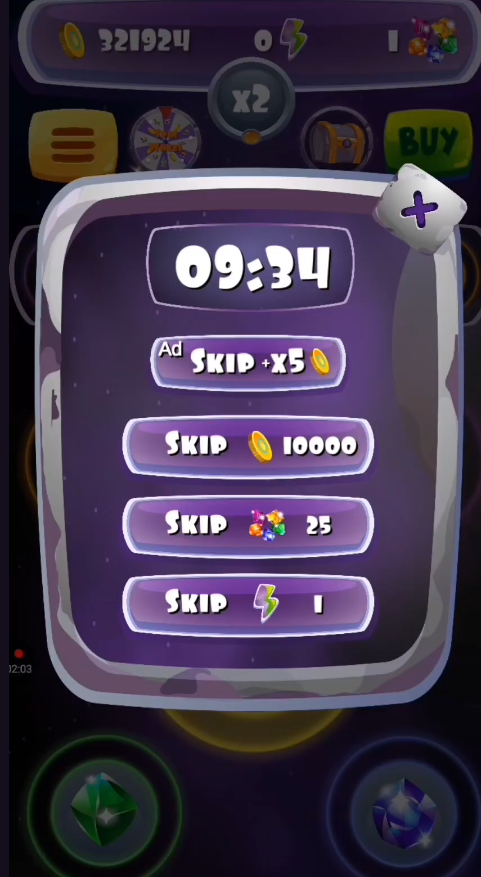 Основная цель игры — собирать баллы, нажимая на 4 кристалла, чтобы раскрыть центральный камень. За это дают 444 токена. Операцию можно повторить через 10 минут или раньше, если посмотреть рекламу. Небольшое количество монет начисляют, если игра все время запущена. Скорость счетчика зависит от накопленной энергии, а ее можно получить, открыв сундук или сыграв в «Колесо Фортуны».