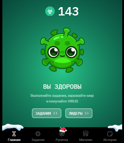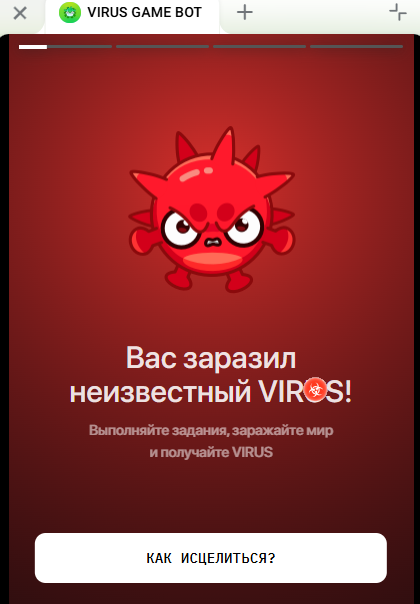 Тематика “неизвестного вируса” проходит через всю игру. Для излечения пользователь должен выполнять задания, а привлечение новых участников называют заражением.