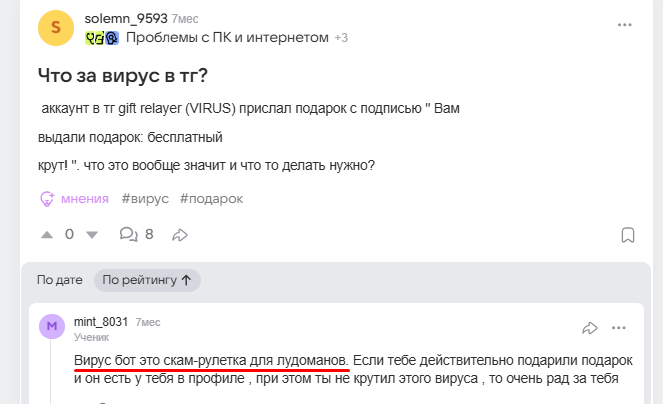 Оставляйте свои отзывы к обзору и помогите другим пользователям определиться, стоит ли переходить по ссылке в Телеграм Gift relayer virus.