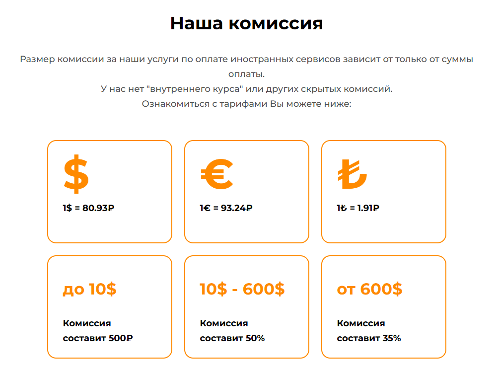 - оплата более 600 долларов потребует 35% комиссии.