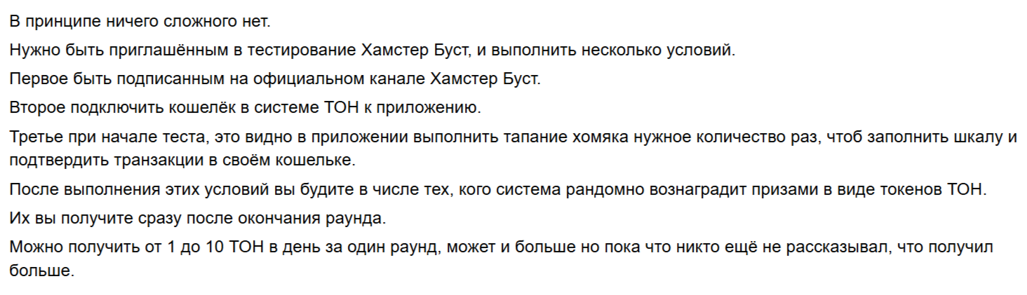 Сразу после запуска проекта разработчики подробно рассказали, как попасть в белый список Hamster Boost. Для этого нужно было выполнить несколько условий: