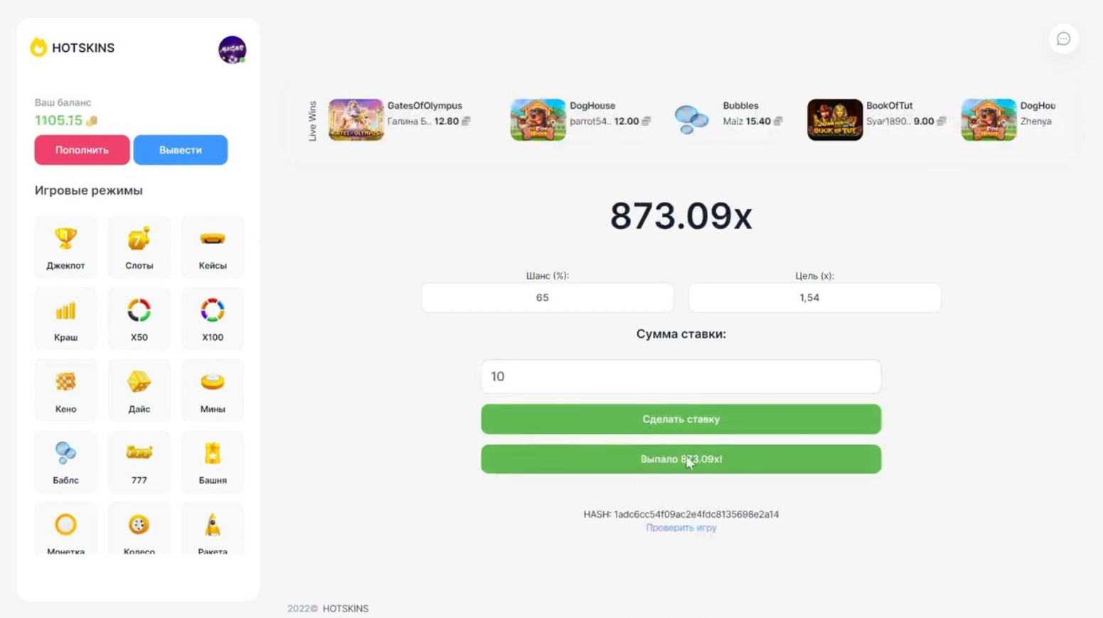 Официальные сайты игры Hotskins – hotskins tech, hotskins ws. На момент написания обзора обе платформы недоступны. Вероятно, проект закрыт. В интернете сохранилась информация о нем. Известно, что это было онлайн-казино с азартными играми и выводом денег. Работало с 2022 года.