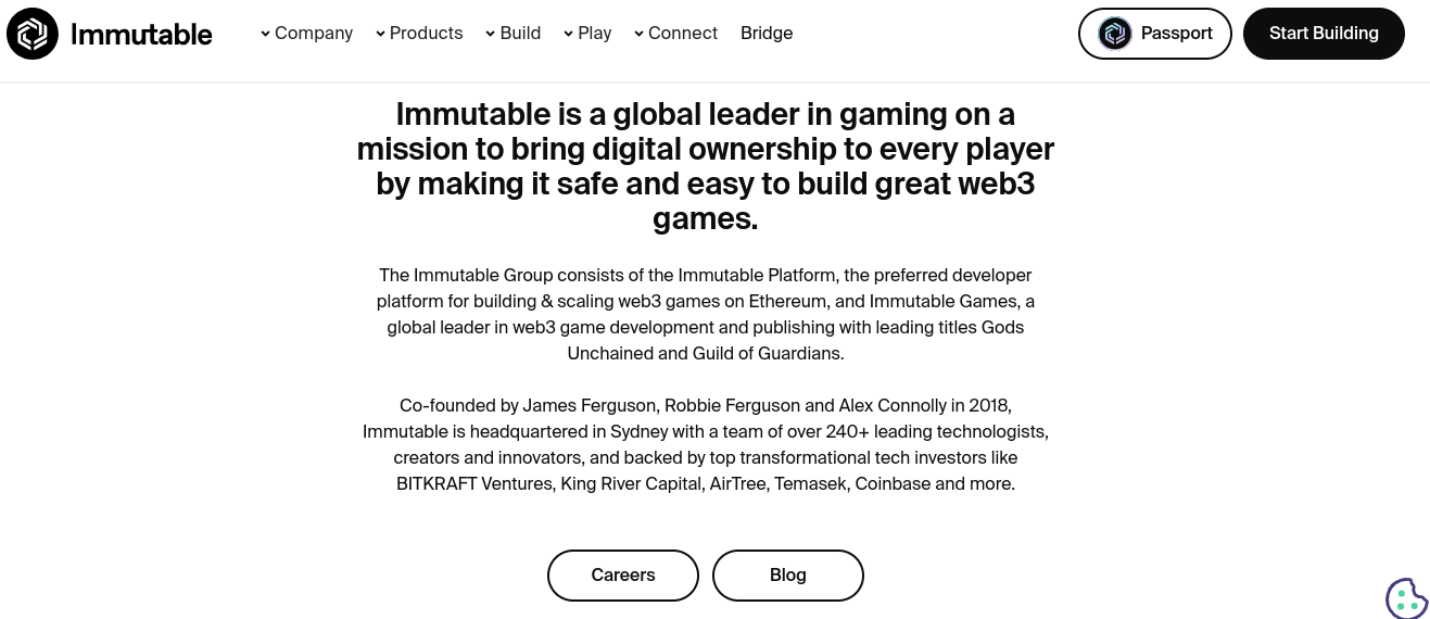 Исходя из информации на официальном сайте, блокчейн-платформа существует с 2018 года. Официальное представительство базируется в Сиднее, но вот конкретного адреса никто не предоставляет. Вдобавок разработчики сообщают, отмечая это как преимущество, что криптовалютный marketplace Immutable x NFT поддерживает свыше 240+ топовых технологий. А основными инвесторами являются BITKRAFT Ventures, King River Capital, AirTree, Temasek, Coinbase, однако идентификаторов партнерских договоров, почему-то, никто не хочет прикреплять.