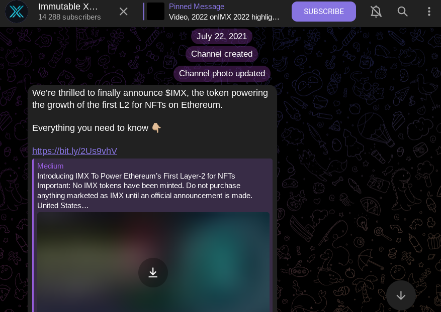 Разработчики проекта вещают о своем детище в нескольких крупных социальных сетях. Касательно СНГ, более распространены телеграм и ютуб. Насчет первого — у Immutable X Official Announcements аудитория свыше 14.2 тысяч человек. В описании вкратце рассказывается о проекте. В качестве основного преимущества указывается отсутствие комиссии и инстант ордера.