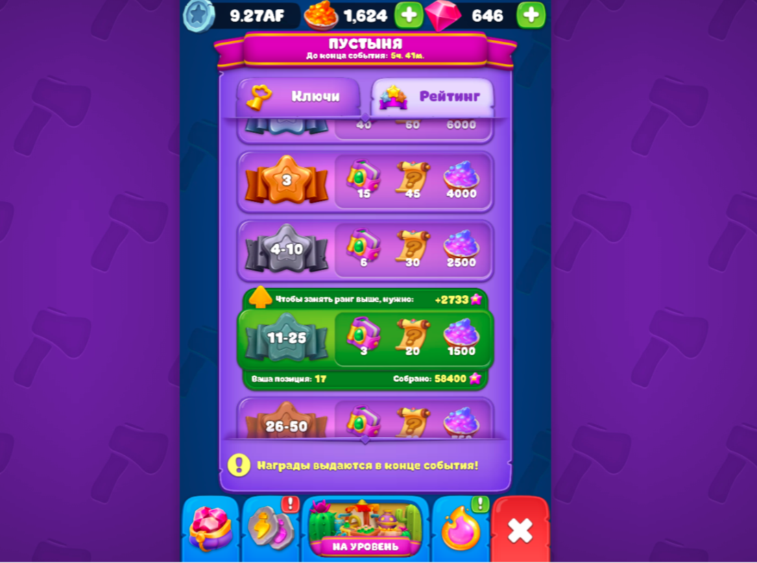 Отдельное место занимают ивенты, которые визуально подаются как временные события с рейтингами, наградами и ограниченным временем. Именно они создают ощущение соревнования и подталкивают к более активной игре.