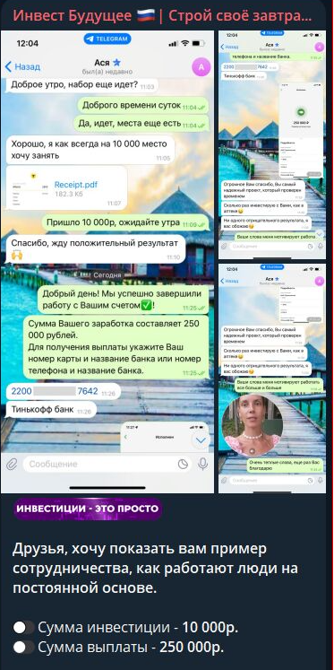 Все указывает на то, что канал «Инвест Будущее Строй Свое Завтра» – это хорошо продуманный мошеннический проект. Его цель – не помочь заработать, а просто забрать деньги у доверчивых людей.