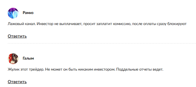 В сети можно найти массу негативных отзывов. Пользователи рассказывают, что канал является частью целой сети подобных проектов-мошенников, которые периодически меняют названия, чтобы замести следы. Схема обмана почти всегда одинакова. После первого перевода человека либо сразу блокируют, и деньги исчезают, либо начинается второй акт пьесы.