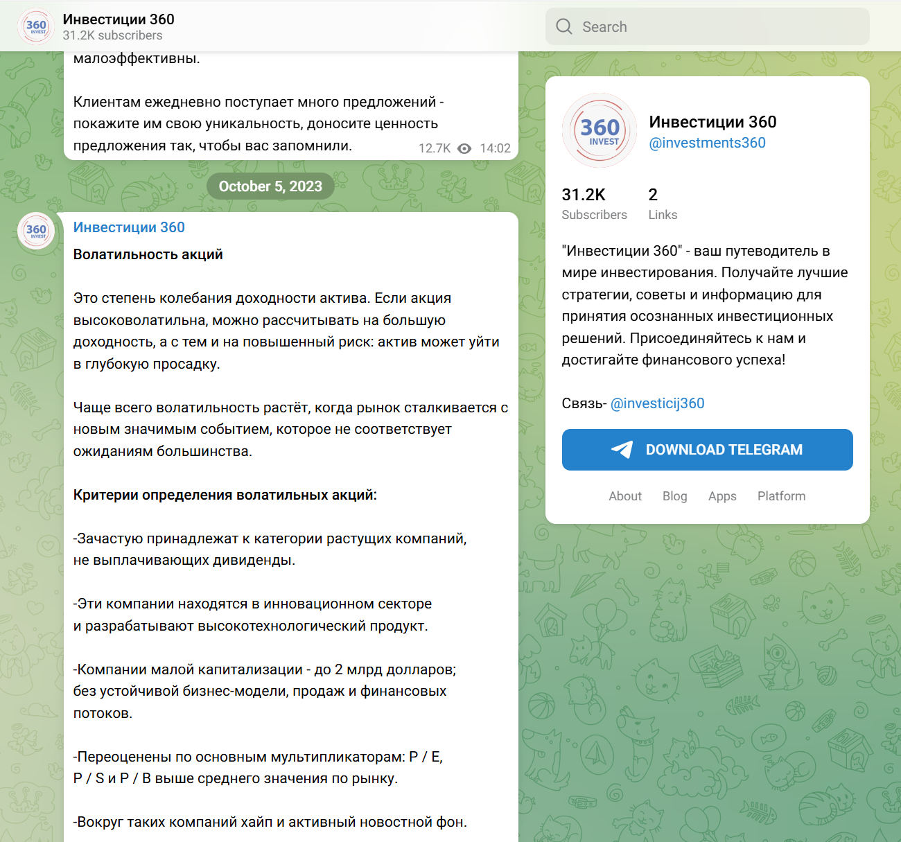 Обзор канала в Telegram «Инвестиции 360» с ником Investments360: оценка контента и платных услуг инвестора с ником Investicij360
