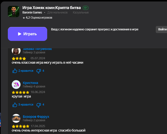 Отзывы о «Хомяк Коин: Крипта Битва»