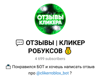 На тг канал «Кликер Робуксов» отзывов очень мало и все найденные мнения негативные.