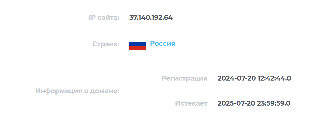 Проверка домена показала, что инвестор Клименко Ольга Игоревна запустила проект еще 20 июля 2024 года. При этом сервер находится в России, что говорит об ориентации на местных пользователей.