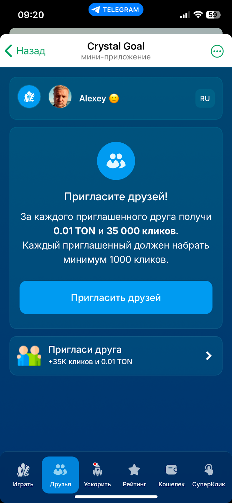 Дополнительные энерджи-поинты можно получить за счет привлечения в проект новых участников. За каждого друга дают дополнительные 35 тысяч кликов.