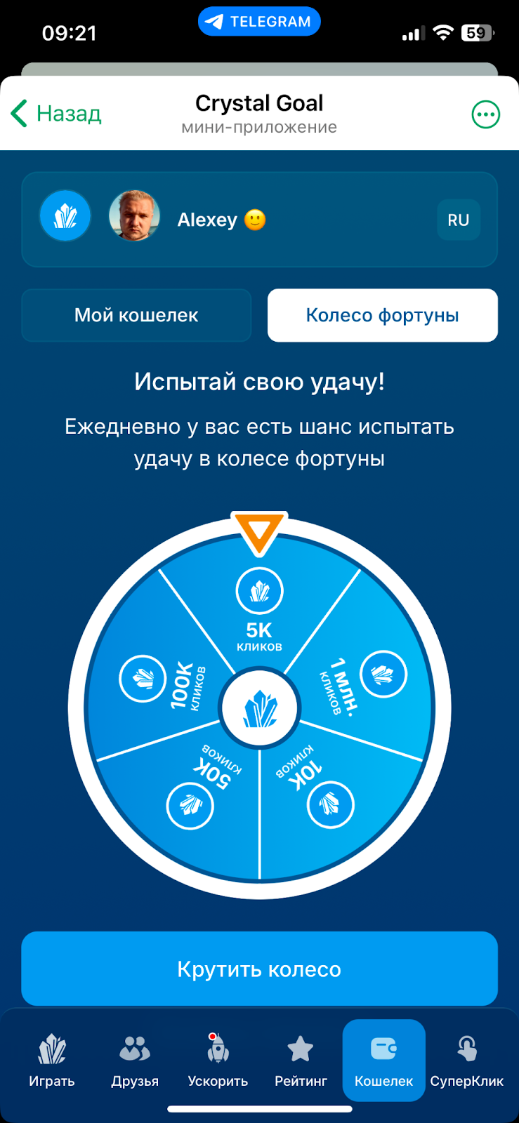 Одна из мини-игр – это «Колесо фортуны». После нажатия на кнопку «Крутить колесо» награду определяют случайным образом. В «Колесе фортуны» можно выиграть от 5000 до миллиона кликов.