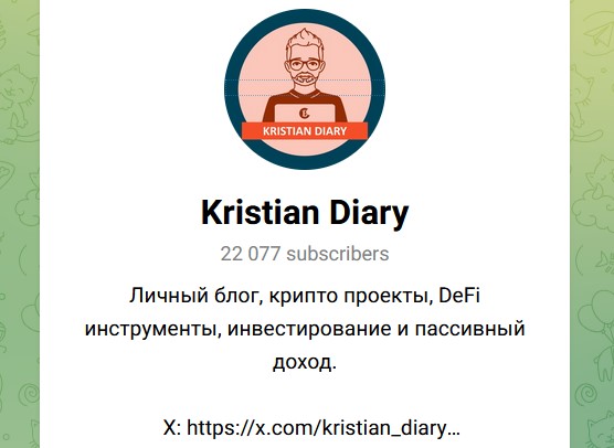 Сообщество Kristian Diary существует с апреля 2024 года. Его автор утверждает, что стал интересоваться криптовалютой, отрабатывать дропы на тапалках и кошельках сети TON и решил стать инфлюенсером этой сферы. В первом посте пообещал делиться темами, которые волнуют лично его.