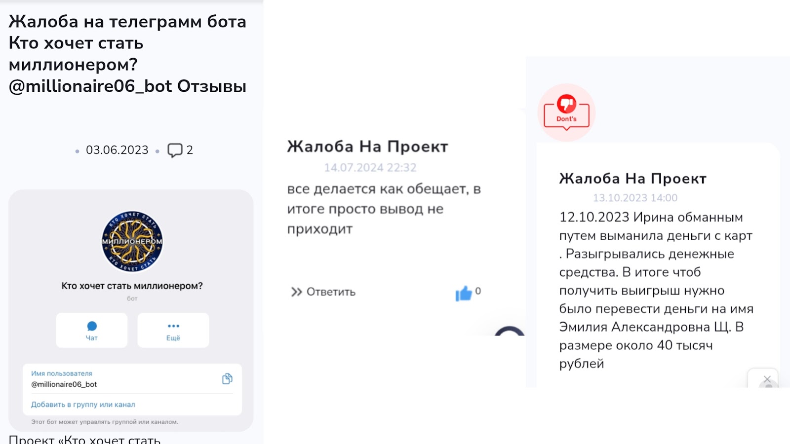Поделиться отзывом о Millionaire06 bot можно под статьей.