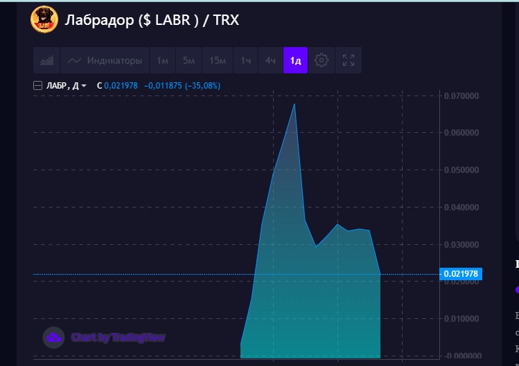 Перед запуском LABR coin, шел активный разогрев аудитории, и когда наконец-то появилась возможность его купить, то их активность просто зашкаливала. Правда не обошлось без негативных моментов — Александр обещал сразу же после запуска дать объявление в канале, но сделал публикацию только спустя час, как оказалось, за это время Labrador coin по стартовой цене купил сам владелец (40%) и два инсайдера (20 и 13%). Таким образом 73% LABR tron оказалось в руках всего трех холдеров.