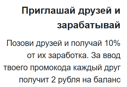 Заработанные средства можно положить на баланс телефона, либо вывести на известные электронные кошельки, например, «Яндекс Деньги», «Пэйер» и другие. Создатели портала предлагают пользователям организовать для себя дополнительный источник пассивного дохода. Для этого нужно пригласить на ресурс друзей и тогда можно будет зарабатывать бонусные 10% от суммы заработка рефералов.