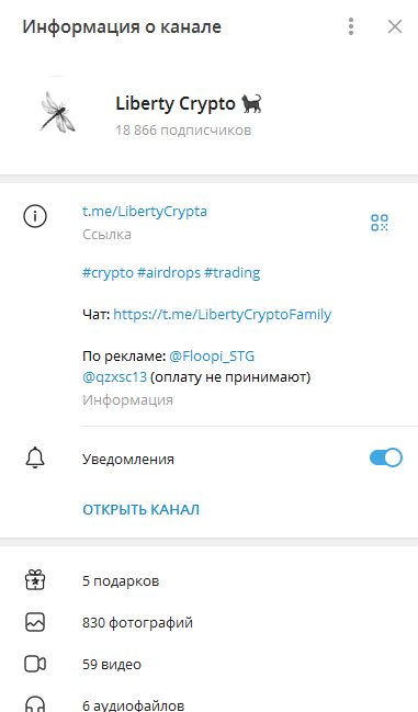 Канал Liberty Crypto позиционируется автором как источник свежих новостей о крипте и инсайтов по заработку в экосистеме TON. Его ведет неизвестный админ, который называет себя экспертом, делает обзоры блокчейн проектов, приложений, делится ссылками на раздачи, аирдропы и прочие темки. Что это за канал и можно ли доверять ему – расскажем далее в статье.