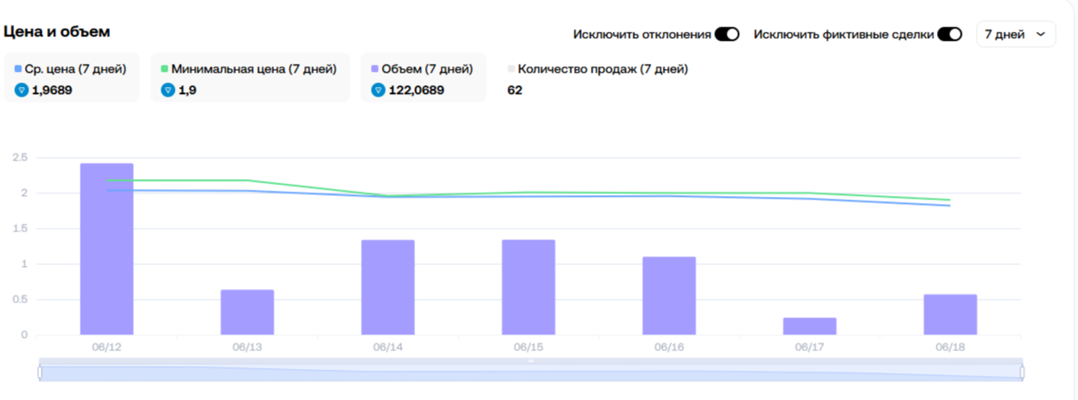 • Объем за неделю 122,06 TON.