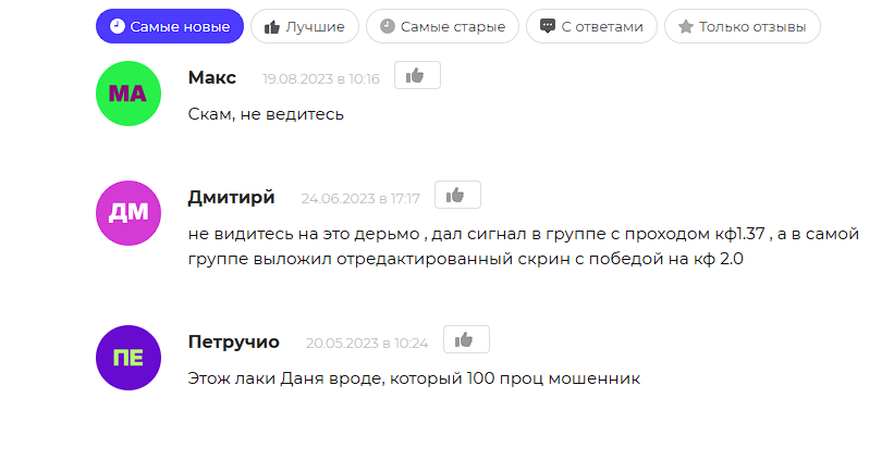 Опровергающей информации, что кто-то заработал по рекомендациям Dan Lucky, мы не нашли. Негативно настроены и авторы обзоров – они считают мошенничеством и саму игру Lucky Jet, где «невозможно выиграть», и сигнальный канал Lucky Homies.
