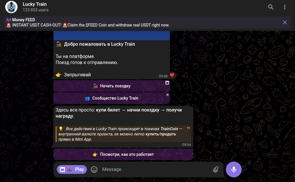 Как зарабатывать на Lucky Train telegram