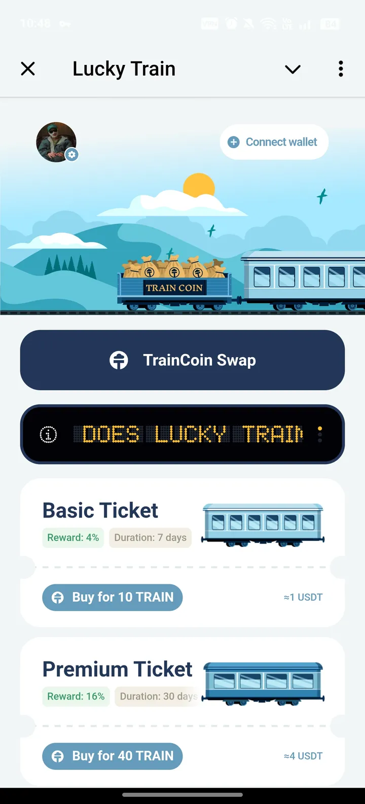 - Basic. Стоимость — 10 $TRAIN. Доходность 4% в течение 7 дней.