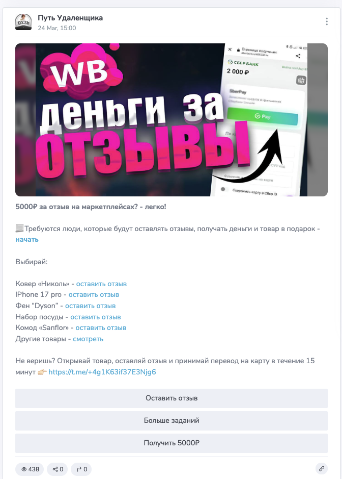 • реклама через сомнительные сообщества, продвигающие скам;