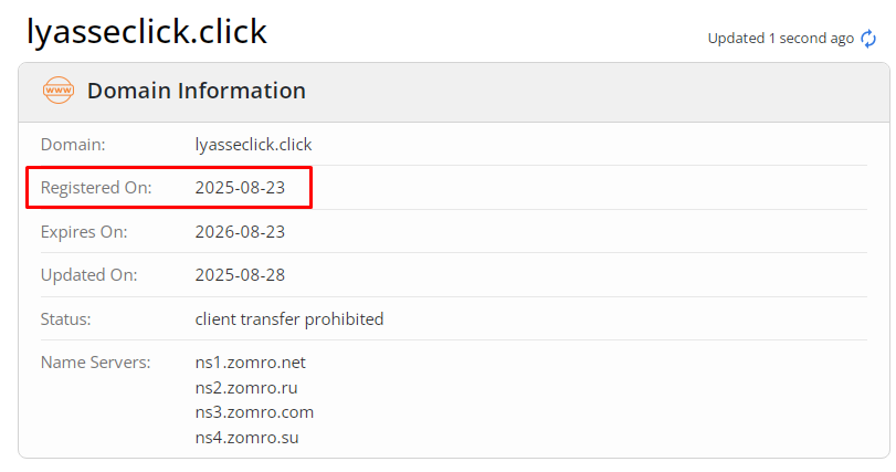 • Молодой сайт: домен был создан в конце августа 2025 года, что часто указывает на временные схемы, рассчитанные на быстрый сбор средств и закрытие.