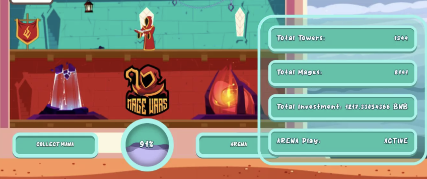 Mage Wars — браузерная экономическая игра с элементами RPG. Ее разработчики заявляли, что их платформа работает на базе блокчейна Binance Smart Chain, а для расчетов внутри системы используется в том числе криптовалюту BNB SC.