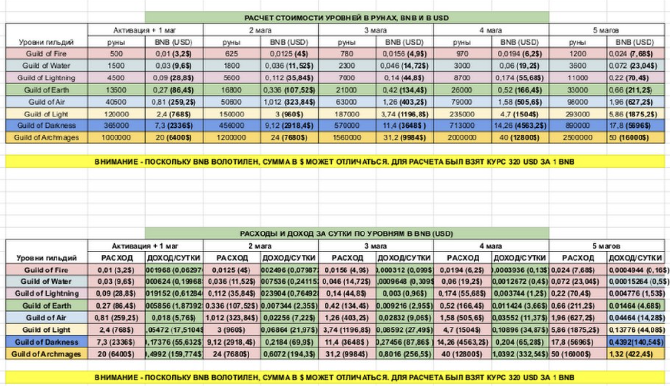 На одном из форумов мы обнаружили таблицу, которая содержит информацию о продаваемых в игре улучшениях. Ознакомившись с этой информацией, мы пришли к выводу, что для получения заработка в игру нужно было вложить сотни долларов. Это подтверждают и отзывы людей, которые участвовали в «Войне Магов».