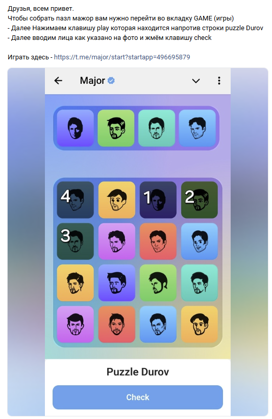 Последние новости Major Durov Puzzle