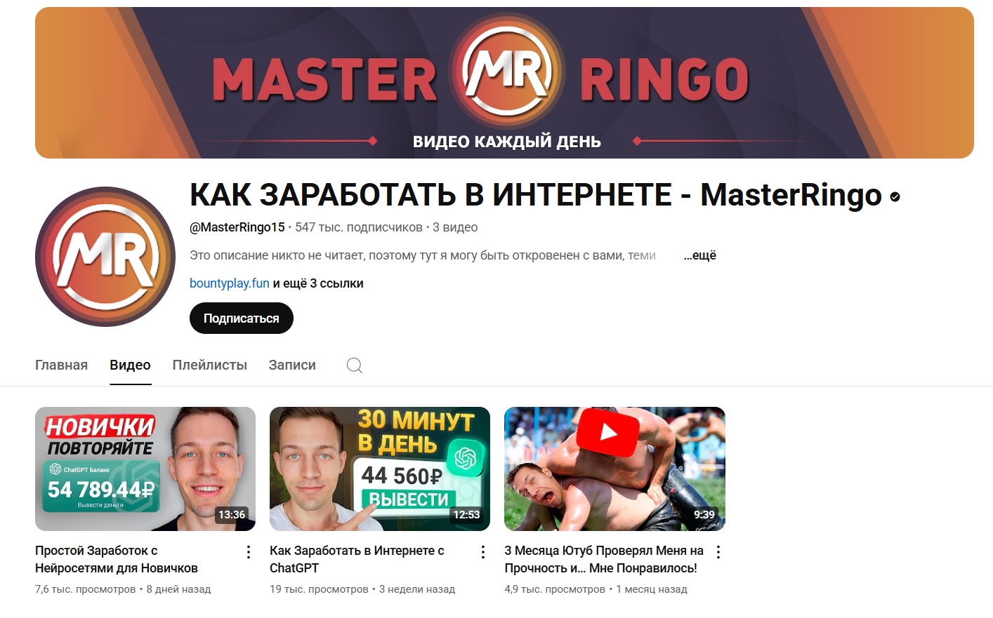 На YouTube можно найти целые серии видеороликов о том, что заработок с MasterRingo – это развод. Согласно расследованиям других блогеров, обзорщик создает мошеннический контент и вводит в заблуждение игроков несуществующей статистикой заработков.