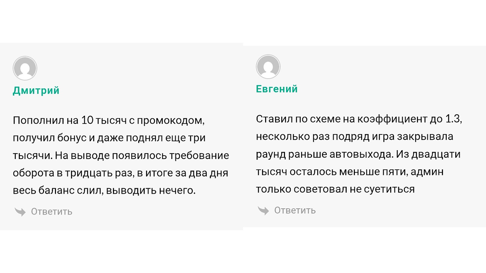 По словам пользователей, во время вывода денег из предложенного автором казино запрашивают оборот в 30 раз, из-за чего клиенты только сливают балансы. При попытках получить помощь от Максима, автор лишь советует продолжать следовать его инструкциям.