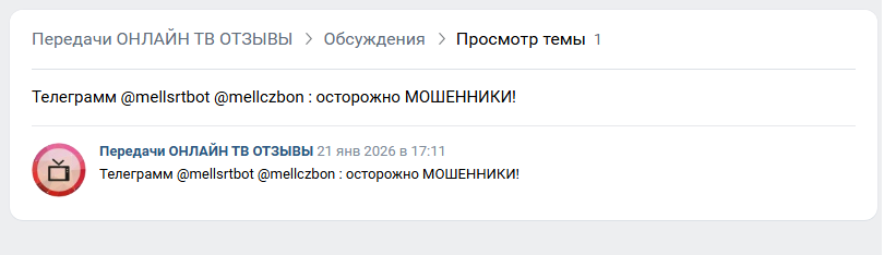 Также мы обнаружили предупреждение на одной из тематических групп в ВК.