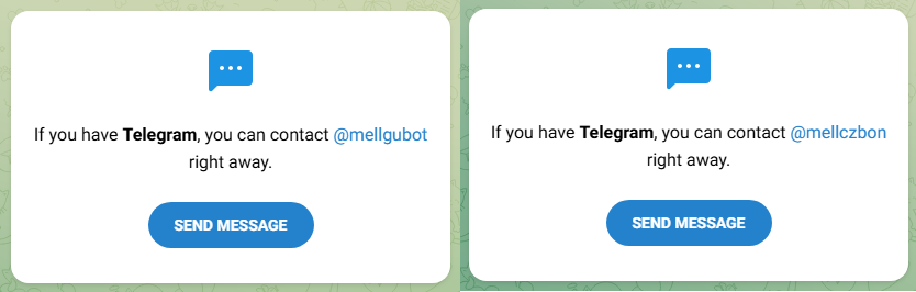 • Mellsrbot — удален администрацией Telegram, имя занято другими людьми;