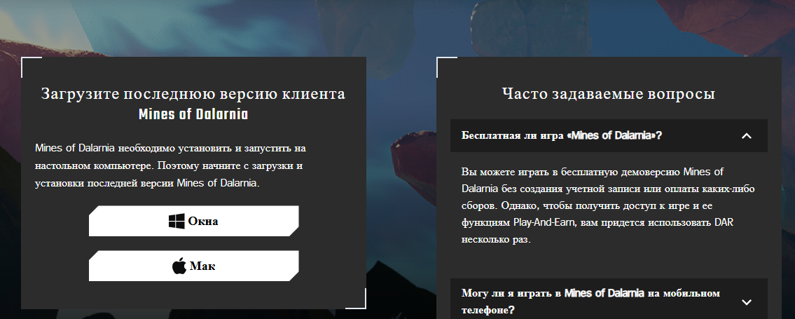В партнерах игры Mines of Dalarnia указано несколько крупных компаний в сфере криптовалют, например биржа Binance. Однако подтвердить, что информация о связи проектов с данным приложением правдива, мы не смогли.Чтобы начать играть в Шахты Даларнии, необходимо установить приложение на Windows или MacOS, мобильных версий программы нет. Причем интересно, что бесплатно здесь ни на что не стоит рассчитывать. На сайте указано, что без создания аккаунта, конечно, можно оценить геймплей, но награды в таком режиме не начисляются. Для возможности их получения необходимо, видимо, заплатить, но данных о конкретных суммах тут нет, что кажется подозрительным.