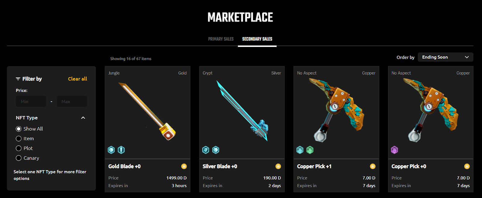 Добытые ресурсы и инструменты выставляются на местный маркетплейс и приобретаются за Dar Coin. Разработчики утверждают, что в игровом процессе данные предметы не помогут, поэтому обладают они, похоже, исключительно коллекционной ценностью.