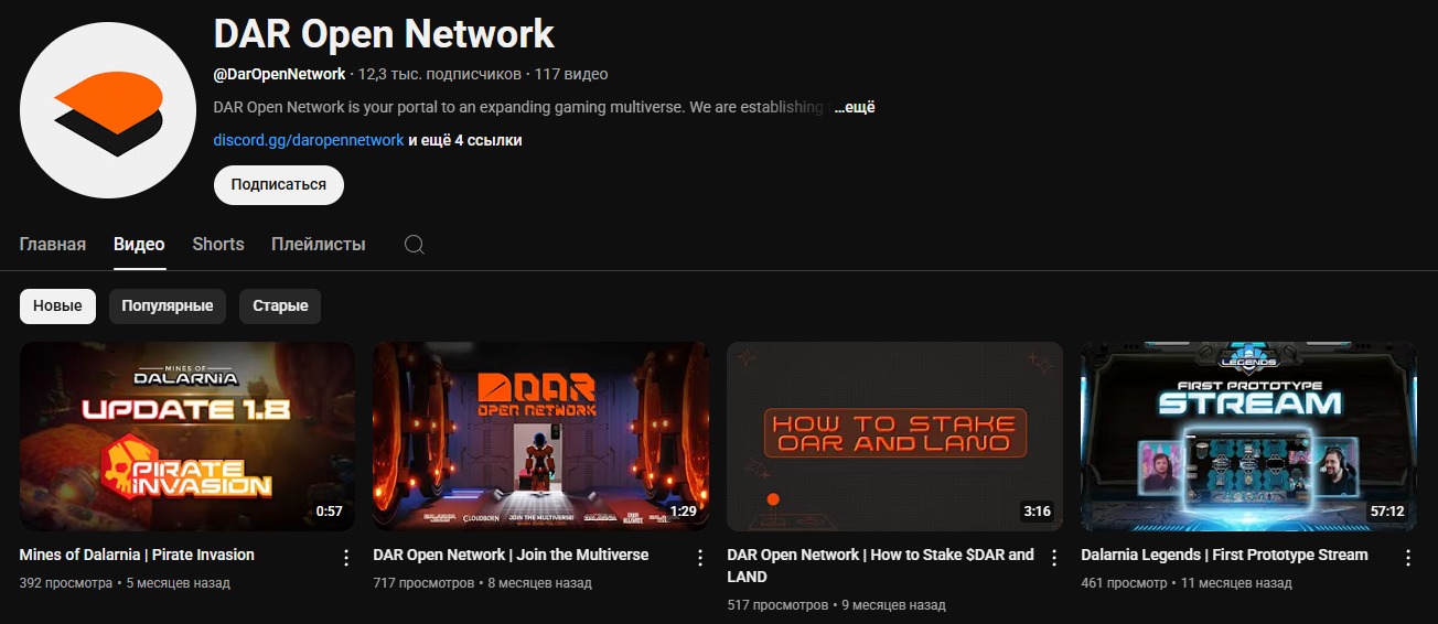 О том, что у пользователей нет интереса к приложению и криптовалюте DAR, можно понять по социальным сетям. На ютуб-канале, который на старте смог набрать более 12 тыс. подписчиков, вовлеченности аудитории в контент нет вовсе. Даже на роликах, которые выпустились почти год назад может не набираться и 500 просмотров. А подобные проекты без должного внимания в принципе не могут нормально существовать, ведь спросу на товары неоткуда взяться.
