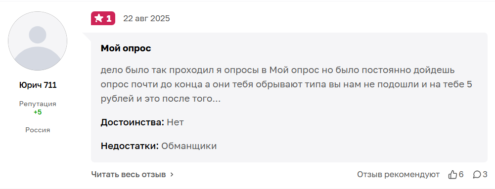 Далее подробнее расскажем про отзывы о платформе Мой опрос ру.