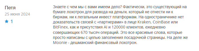 Что пишут пользователи в отзывах о Moonie Finance