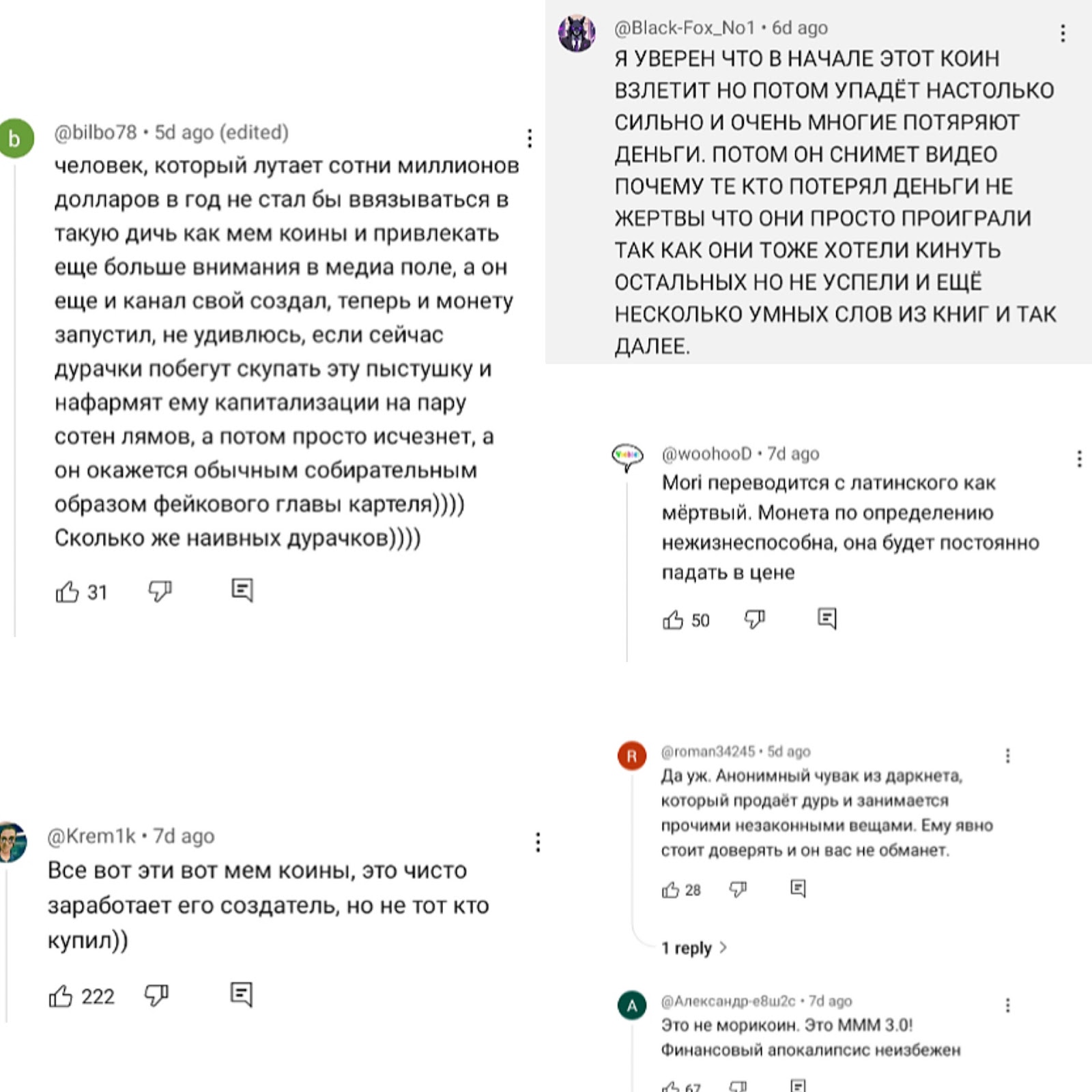 Однако встречаются и отзывы о том, что у монеты Mori coin crypto есть признаки скама, и цена мемкоина Мори token может значительно упасть.